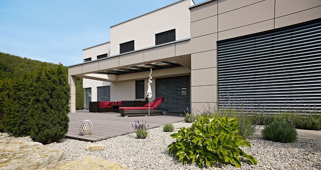 - Außenliegende windstabile Verschattung